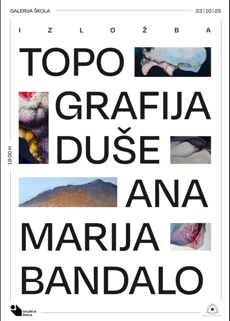 Akademska slikarica Anamarija Bandalo23. listopada 2025. godine otvarila je svoju prvu samostalnu izložbu „Topografija duše” u splitskoj Galeriji Škola. Izložba predstavlja ciklus akrilika na platnu u kojima istražuje granice apstrakcije kroz slojevitu, mijenjajuću formu koju naziva „fluidna masa svjetlosti” — simbol traga čovjekove nutrine, istovremeno osobnog i univerzalnog. Slojevi boje skrivaju i otkrivaju tragove sjećanja, emocija i iskustava, dok ručno iscrtana mreža na površini platna simbolizira povezanost svjesnog i nesvjesnog, tame i svjetla te čovjeka i okoline, funkcionirajući kao „karta čovjekove nutrine”.