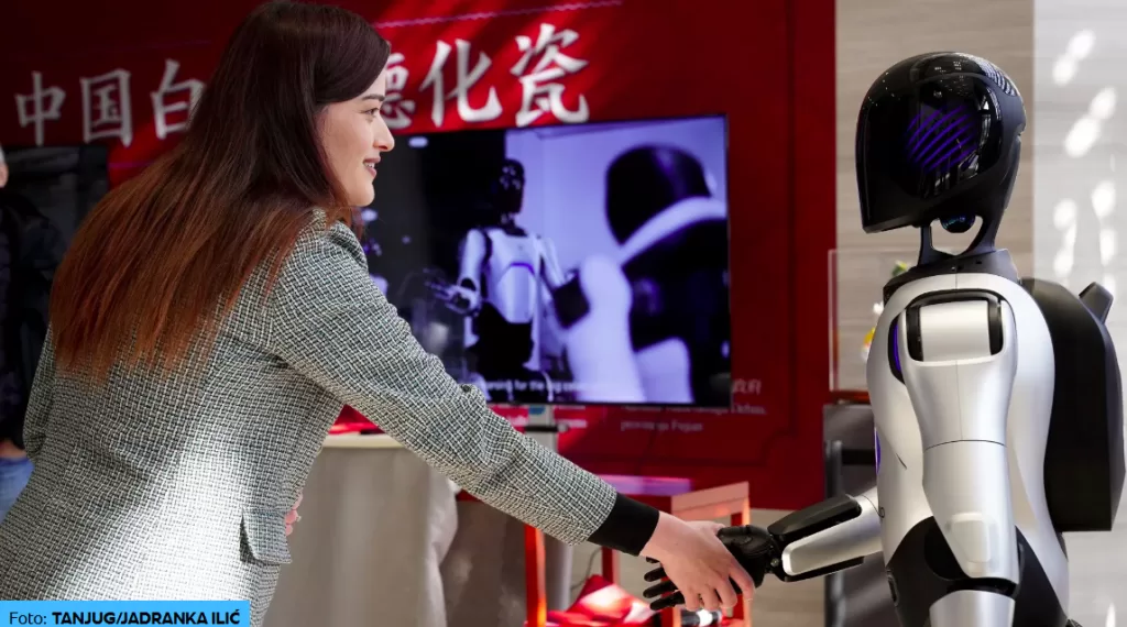 U Beogradu, ikonografija je gotovo ista, samo s jačom dozom spektakla. Predsjednika dočekuje humanoidni robot Luka u Kineskom kulturnom centru: rukovanje, komplimenti, tvrdi stisak ruke, par rečenica na engleskom o tome kako je Srbija “most inovacija u Europi”. republika.rs